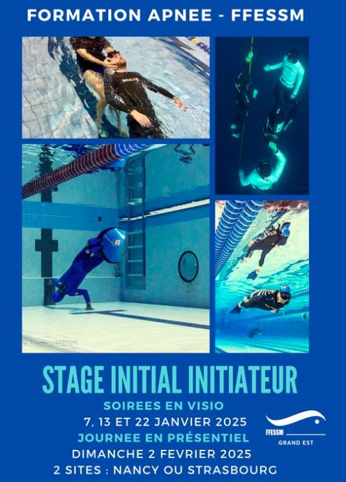 Formation RIFAA (1ere session en cours), formation niveau apnéiste débute en janvier, formation IE1 (débute le 7 janvier en visio, inscription h.comte@hotmail.fr), Apnéiste Expert en Eaux Libres le 1 fevrier à Nancy (inscription codep). Nous essayerons de vous proposer une seconde session RIFAA après février.